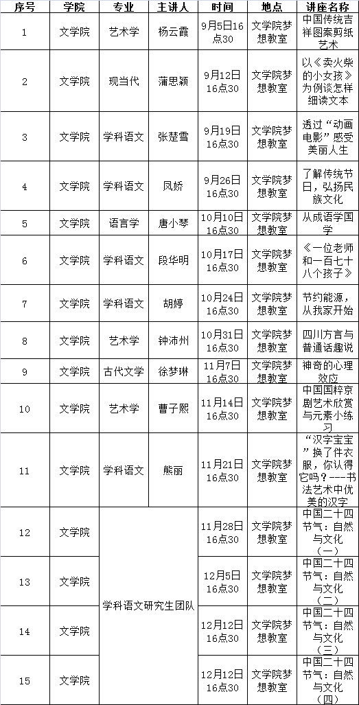 本学期梦想中心主题活动已安排就绪,讲座时间调整为每周一下午16点30——17点30分