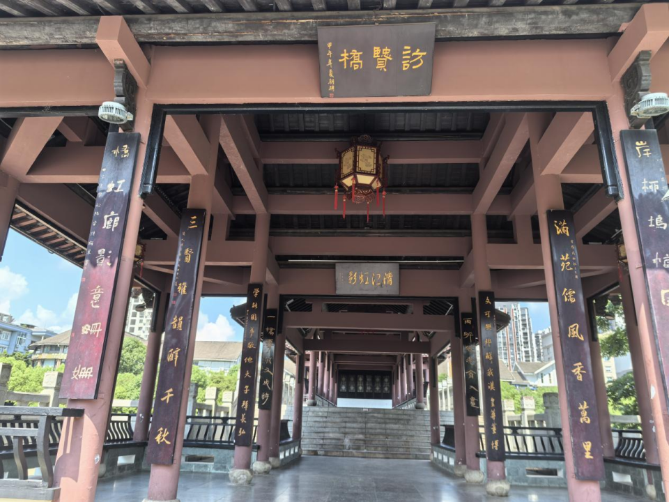 团队首先到达资阳市三贤文化公园,公园内“三贤阁”、“访贤桥”、“敬贤斋”等建筑以浮雕群像展现王褒与苌弘、董钧的历史贡献,其建筑设计融合川中园林特色与现代展陈技术,成为资阳文化地标。在公园内的王褒纪念馆,团队通过多媒体展示与文物陈列,系统了解王褒从墨池苦读到名震长安的人生轨迹。馆内复原的汉代书房场景,生动再现了王褒以树皮练字、池水尽墨的典故。