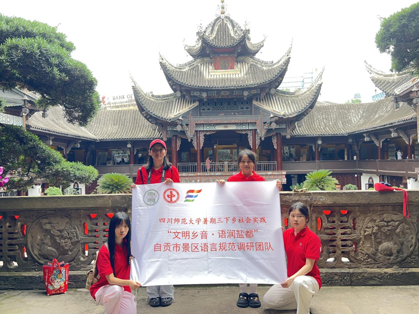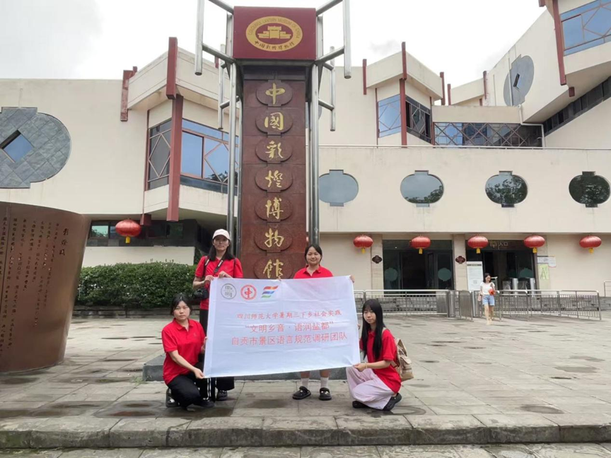 202574日至8日,由文学院硕士研究生王颖、苟璐瑶、廖婉莹、涂文雯组成的四川师范大学“语润盐都”暑期“三下乡”社会实践团队,在文学院王振老师的指导下,前往四川省自贡市,实地开展了以“文明乡音•语润盐都”为主题的景区语言文字使用规范专项调研。