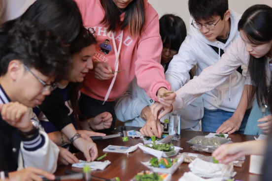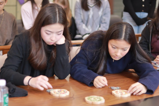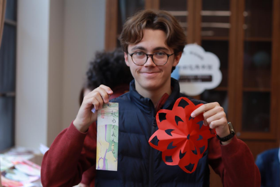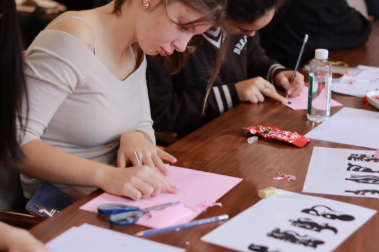 活动伊始,主持人向中外学生表示热烈欢迎,并简要介绍了本次活动的丰富主题与流程。随后,中华传统文化体验区开放,学生们自由参与体验,现场气氛迅速升温。在中华传统文化体验区,设置了诗词书签、漆扇DIY、香囊拓印、传统剪纸以及串珠手工艺等多个互动项目,吸引了众多法国学生驻足参与。学生们亲手实践,在体验中深入了解了中华文化的精妙与雅致,文化交流的桥梁在互动中建立。