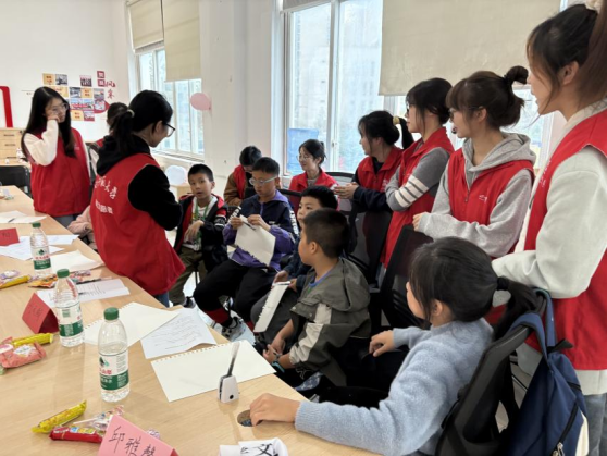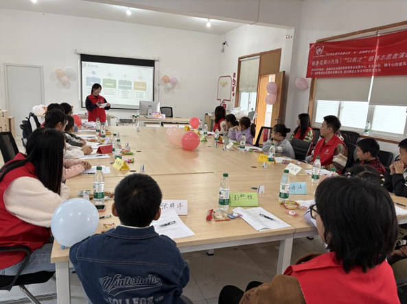 当天下午1点,志愿者们提前来到活动室布置场地、调试设备,准备茶歇等物品。大家都非常认真地工作,相互帮忙,贴横幅,吹气球、摆放礼物,还细心给每一位小朋友制作名牌。完毕后,志愿者们引导小朋友签到,带他们到自己位置做好准备。