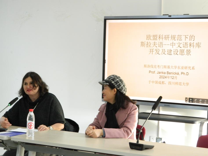 2024年12月30日下午16:00,四川师范大学文学院主办的学术讲座:欧盟科研规范下斯拉夫语——中文语料库开发及建设愿景,在文学院会议室如期举行。本次讲座由斯洛伐克考门斯基大学文学院东亚语言文化系教授Janka Benická教授主讲,四川师范大学文学院张颖老师主持,文学院各专业本科生、研究生及相关教师共30余人聆听了本场讲座。