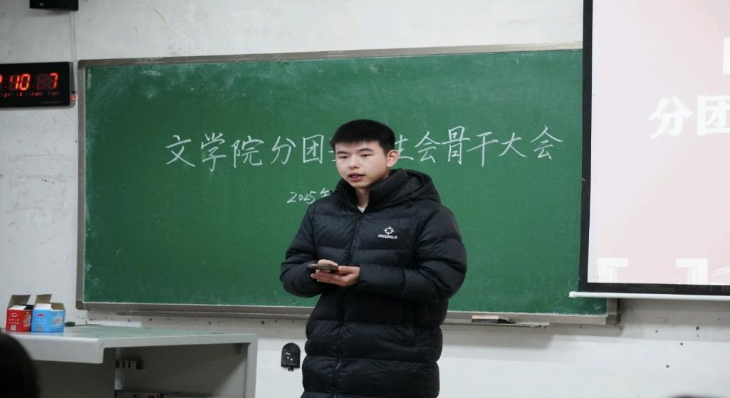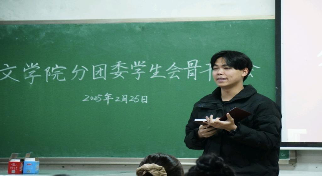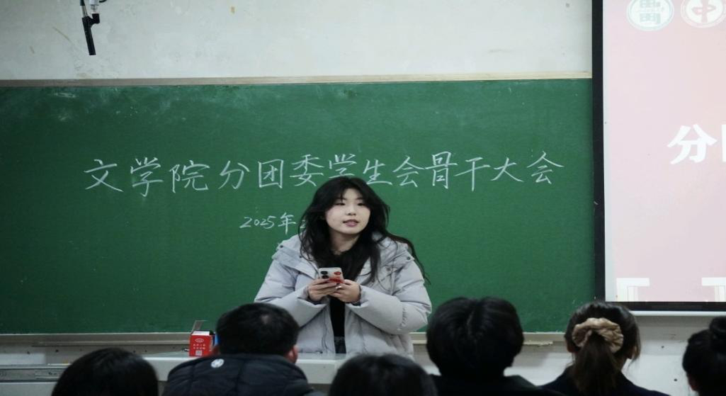 2月21日下午,文学院2025-2026届分团委学生会骨干大会于狮子山校区第七教学楼101教室召开。文学院分团委负责人朱美玲,副书记贾文哲,学生会办公室主任吴欣悦,学生会执行主席万霖钟、谭雪、邱语芯出席本次会议。全体分团委学生会学生骨干参加此次会议。本次会议由吴欣悦主持。