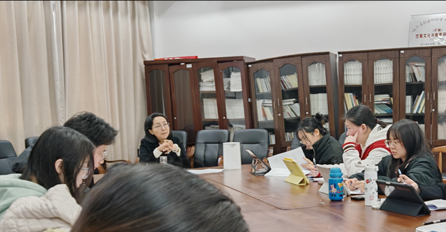 2025年3月4日下午13时,王红霞导师组在巴蜀文化研究中心一楼会议室召开本学期两古专业第一次“悦读”读书会。会议由王红霞教授主持、评议,王红霞导师组两古专业11名研究生参加本次会议,1名同学旁听本次会议。本次读书会主要由2024级李韩同学就近期所阅读的学术论文《标举汉魏风骨,征于晋宋文献——陈子昂复古诗学新论》进行汇报分享。