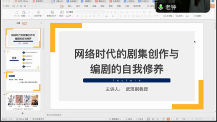 最后,主持人钟平丹老师对本次讲座进行了总结,并与武老师在编剧要先写、敢写才能写好这一观点上的进行了学术交流。讲座的最后,参与讲座的老师和同学对武老师的精彩分享表示了由衷的感谢,本次讲座圆满结束。
