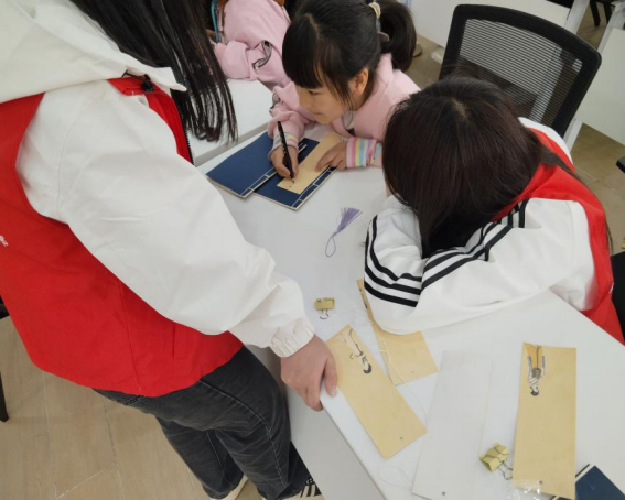 本次活动巧妙融合了传统文化的传承与实践,通过甲骨文探秘、经典共读、古籍装帧等多元形式,带领孩子们触摸文明根脉。孩子们在猜字互动中解码汉字基因,于穿针引线间感悟匠人精神,以笔墨丹青传递诗书情怀,让典籍里的智慧跃然于指尖。志愿者们以文载道、以美润心,将专业学识转化为生动课堂,搭建起古今对话的桥梁。今后,我院将持续传递中华优秀传统文化,让典籍活起来、让传统潮起来,在知行合一中书写文化传承的青春答卷。