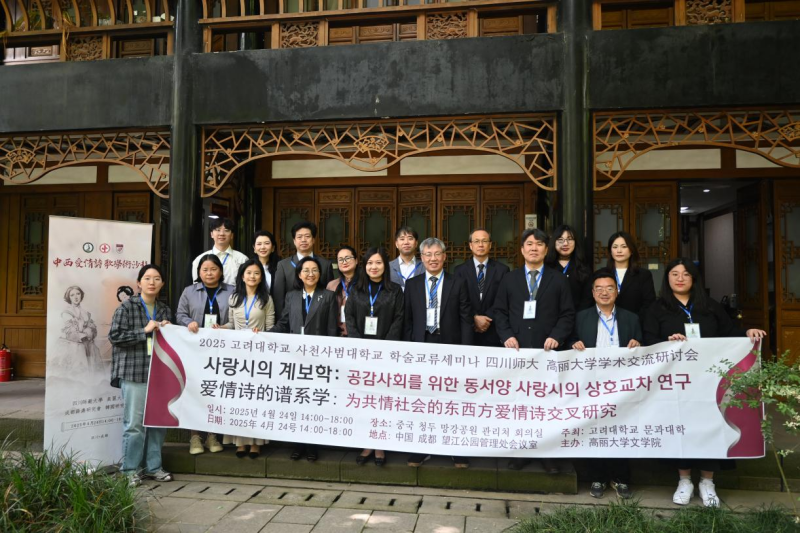 2025年4月24日,由四川师范大学文学院与韩国高丽大学文学院联合主办,成都薛涛研究会与韩国研究财团协办的“中西爱情诗歌学术沙龙”在成都市望江楼公园管理处会议室成功举办。此次活动以“中西爱情诗歌的美学对话与跨文化阐释”为主题,此次学术交流共有来自四川师范大学、四川外国语大学、韩国高丽大学的20余位学者参与,学者们齐聚一堂,对古今中外的爱情诗歌进行了阐释,从薛涛到波德莱尔、从权德舆到雪莱,讨论热烈,碰撞出了学术的火花,促进了学科建设。