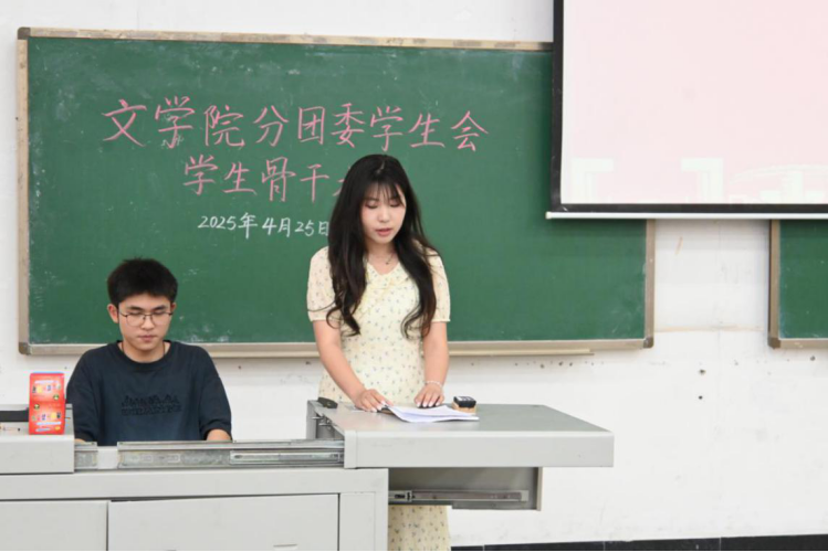 4月25日中午,文学院2025-2026届分团委学生会骨干大会于狮子山校区第七教学楼318教室召开。文学院分团委负责人朱美玲,分团委副书记贾文哲,学生会执行主席邱语芯、谭雪、万霖钟,分团委学生会办公室主任吴欣悦出席本次会议。本次会议由吴欣悦主持。