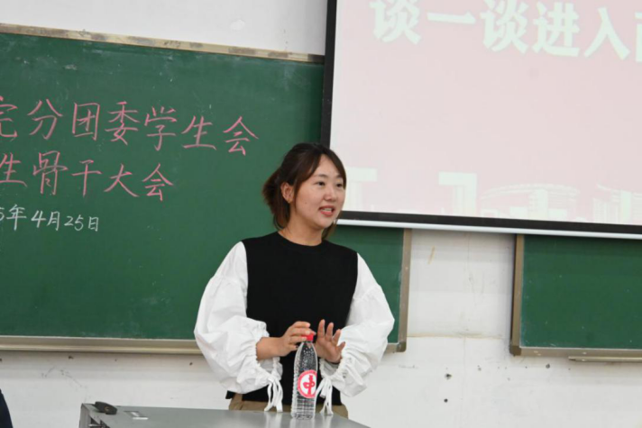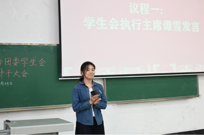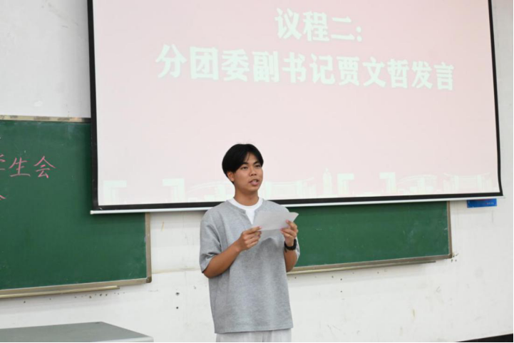紧接着,分团委副书记贾文哲对近期分团委各部门发展概况及工作落实情况进行了总结,表扬各部门的付出与实效,并希望未来学生会、分团委能够进一步加强交流协作,共同推进学院工作。