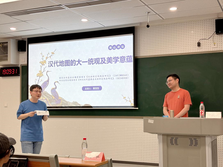 为深入解析汉代地图所承载的大一统国家观念及其美学意蕴,2025年5月16日19:00,文学院“蜀山讲坛”第十七期第十二讲学术讲座在第一教学楼101教室举行。本期讲座邀请四川师范大学黄忱忱老师作为主讲嘉宾,黄老师以“汉代地图的大一统观念及美学意蕴”为题,带来了一场横跨考古学、美术史与美学的学术盛宴。本次讲座由庞弘教授主持,文学院各专业本科生、研究生及相关专业教师共同聆听了此次讲座。