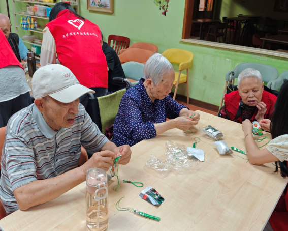 一针一线,香包缝起岁月记忆。继趣味活动后,香包DIY环节将整场活动推向高潮。志愿者们为老人们生动讲解了端午节做香包的传统习俗并在制作过程中采取“一对一”指导方式,耐心协助老人们完成香包制作。在共同的努力下,一个个香包圆满落工。在一针一线的协作中,增进了志愿者与老人对“岁月”与“陪伴”的双向理解——如同香包里的艾草,历经时光沉淀,仍能散发出治愈人心的香气。