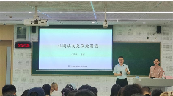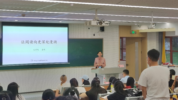 2025年6月19日19:00,四川师范大学文学院主办的学术讲座在狮子山校区第一教学楼101教室如期举行。本期讲座主题是“让阅读向更深处漫溯”。本次讲座由四川师范大学文学院唐明老师主讲,赵建明老师主持。文学院各专业本科生、研究生参加了本场讲座。