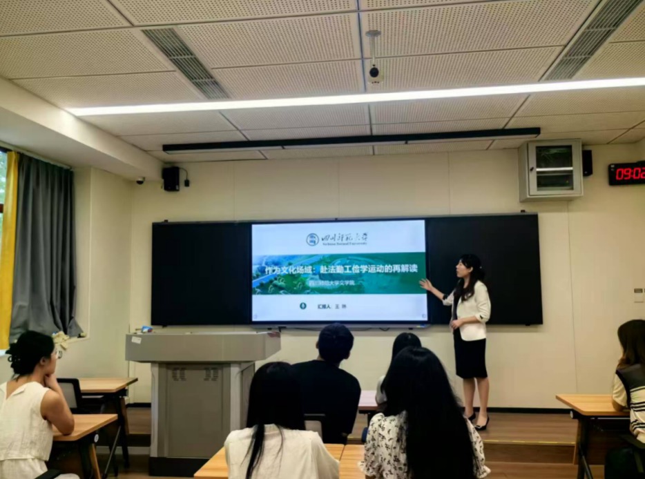 2025年6月20日上午,文学院学术讲座在狮子山校区第一教学楼102教室如期举行。本次讲座邀请四川师范大学文学院王琳副教授作为主讲嘉宾,王老师从文化场域这一角度切入,深度解析赴法勤工俭学运动,展开了一场“再解读”的学术讲座。本次讲座由四川师范大学李琴副教授主持,文学院各专业本科生、研究生及相关专业教师共五十余人聆听了本场讲座。