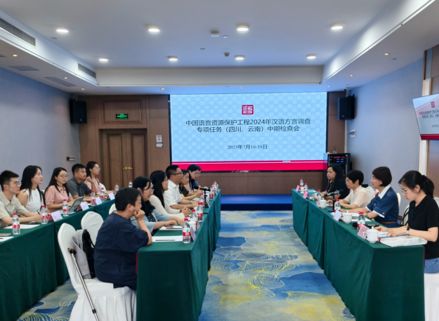 2025年7月16至18日,中国语言资源保护工程2024年汉语方言调查专项任务(四川、云南)中期检查会在成都顺利举行。验收专家组由吉首大学瞿建慧教授(组长)、北京语言大学王莉宁教授、广东外语外贸大学杨慧君副教授等组成。会议由四川省教育厅语言文字教材处副处长李睿主持,教育厅语言文字教材处主任科员范文婧、我校课题负责人袁雪梅教授、王倩倩博士后及调查团队主要成员参加会议。