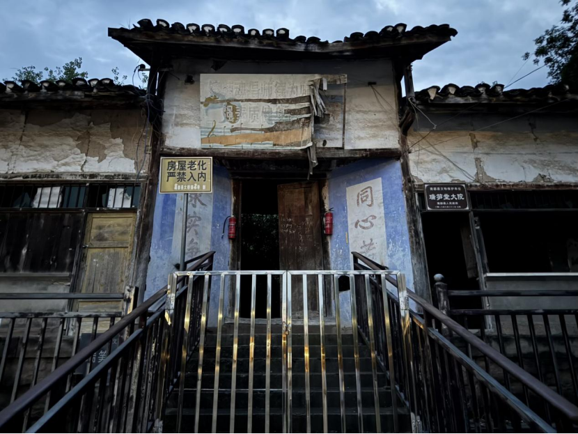 7月8日,在大桥镇小学袁玮校长的带领下,团队到达位于大桥镇小学内的瑞笋堂。袁校长提到:“瑞笋堂最初是陈氏家族供奉三位状元的祠堂,后演变为县衙使用。该建筑群为三进院落阶梯式布局,意为步步高升。‘瑞笋’即如竹笋状的石头,质地坚硬,中笋高达2米。”据《陈氏族谱》记载:“先祖(陈翔)下葬时,天降鸿雨七日,地生瑞笋三根,兄弟将相迭出。”