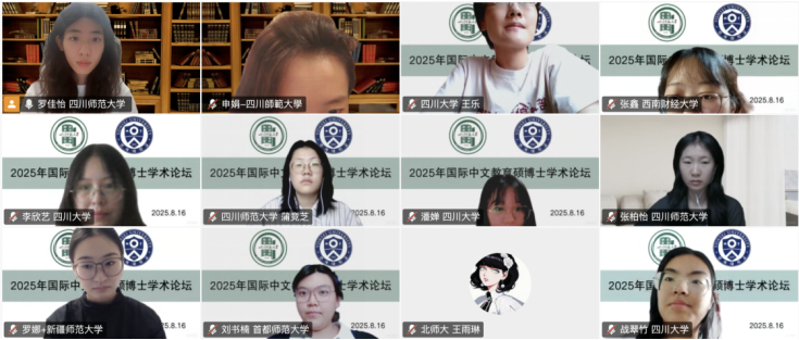 “2025年国际中文教育硕博士学术论坛”于2025年8月16日在我校成功举办。该论坛由四川师范大学文学院主办,韩国延世大学中国研究院协办,在腾讯会议上举行,有来自全球78所高校的170余位硕博士研究生参加。