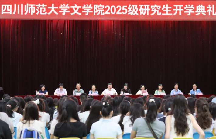 2025年9月10日上午8:30,在第41个教师节来临之际,四川师范大学文学院2025级研究生开学典礼在桃李园三楼学生活动中心举行。文学院党委书记徐文渊、院长毛娟、副院长袁雪梅、导师代表张伟、学院各硕士点负责人、研究生辅导员、教学办公室老师出席此次开学典礼,2025级全体硕士研究生、博士研究生参加开学典礼,典礼由学院党委书记徐文渊主持。