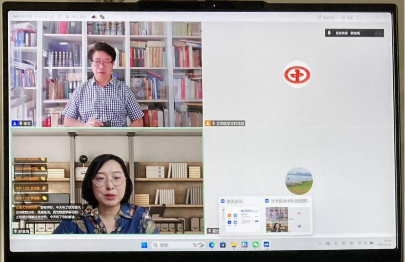 “蜀山讲坛”持续关注人文前沿课题,是四川师范大学文学院为校内外师生及学者提供高水平的交流平台。本期讲座系统梳理了西方现代派诗歌的叙事特征,融合理论阐释与文本分析,展现了跨学科研究的魅力。讲座现场气氛热烈,观众通过在线提问与留言积极参与交流。讲解深入浅出,对理解诗歌叙事学、探索文学研究新路径具有重要启发意义。
