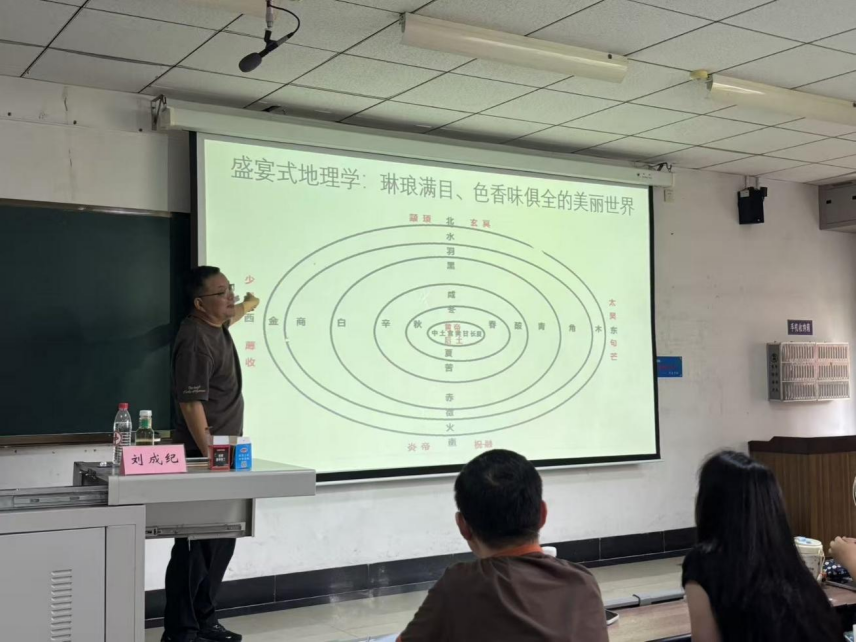 刘教授以地理环境是认知“中国”的根基和地理的审美本性为背景,指出“中国”不仅是一个地理概念,更是一种审美建构。传统中国人将天地、四时、五行、五色等元素有序地纳入“天圆地方”“四山四海”“中心—边缘”的空间框架中,形成了一套完整而自洽的宇宙观与世界观。这种“审美地理学”并非单纯的自然景观欣赏,而是人对世界秩序的主观赋予与意义建构。在这一意义上,“中国”本身就是一个“美学的中国”。