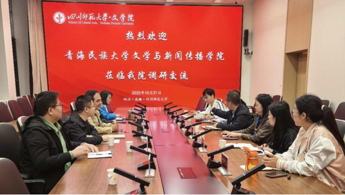 10月21日,青海民族大学文学与新闻传播学院副院长孙中强教授一行6人莅临我院调研交流。调研交流会在狮子山校区文学院210会议室举行,会议由文学院副院长谭光辉教授主持,相关教研室负责人参加。