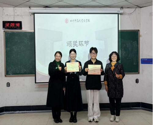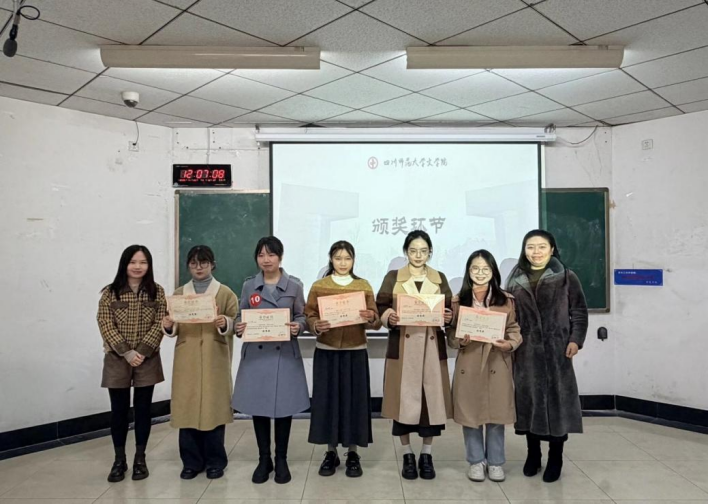 经评委综合评议,陈尹、王建莓获一等奖;黎施贝、胡诗悦、薛梦琴和王怡获二等奖;刘灿、温子涵、代小兰和康瑶获三等奖;杨雪琴、岳敏、赵丹、李婧婷、代文君和卓玉娟获优秀奖。
