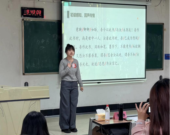 2025年11月22日上午,文学院第十九届“春华杯”暨研究生第五届教师职业技能大赛决赛在狮子山校区第七教学楼405室成功举行。