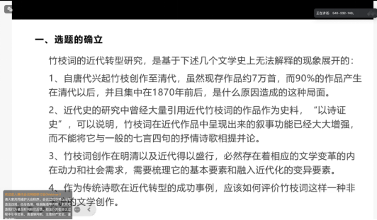 最后,在互动交流环节,线上学生积极提问,朱老师耐心回应,王老师补充阐释。老师们的解答不仅加深了听众对竹枝词的认知,也为学术论文撰写提供了方法参考。