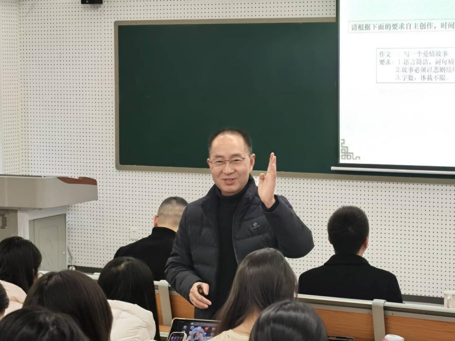 讲座开篇,杨春副校长以一场趣味互动拉开序幕:要求学生在 5 分钟内创作爱情悲剧故事与包含三个以上门派的武侠短篇小说,既活跃了现场氛围,也直观考察了学生的思维敏捷度与创造力。随后,他紧扣《教育强国建设规划纲要》要求,结合 AI 技术引发的教育变革趋势,直指当前课堂教学的核心痛点。他指出,在大模型迭代推动认知革命的背景下,传统单向灌输式教学已难以适配学生核心素养发展需求,课堂亟需从“知识传递”转向“感官激活与思维赋能”;同时,新时代好课堂需兼具意义、效率、生成性、常态性与发展性,既要体现温度、深度与效度,更要实现生态动静交织、学生主动参与、以学定教、多学科融合的样态,要解决“如何让学习真正发生”的实践困惑。