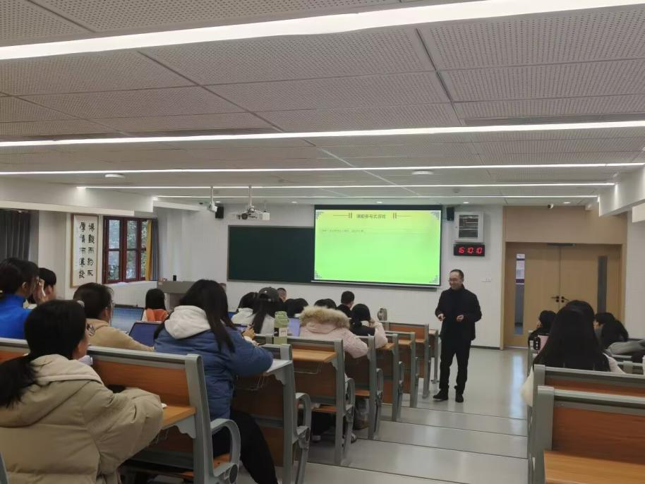 2025 年 12 月 3 日,文学院学科活动月专题讲座《五官课堂的实践探索与成效》在第二教学楼 301 教室顺利举行。本次讲座由四川省中小学省级骨干教师、成都市学科带头人、成都市龙泉驿区光华东山学校副校长杨春主讲,讲座由文学院学科教学论教研室主任赵建明老师主持,汉语言文学专业及学科教学(语文)方向部分研究生到场聆听,现场学术氛围浓厚。