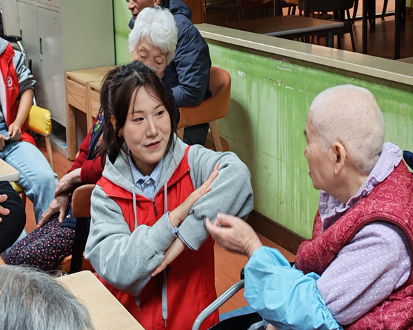 随后,志愿者带领老人们共跳二十四节气歌手势舞。简洁灵动的八个动作,搭配朗朗上口的节气歌谣,既锻炼了老人们的手部关节与身体协调性,又巧妙传播中华优秀传统文化,现场互动热烈,老人们跟着节奏认真学习,笑容满面。