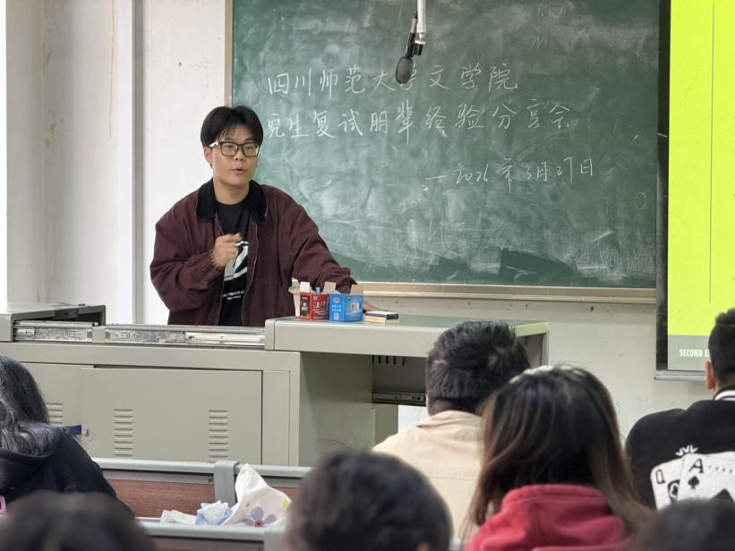 3月27日中午12点30分,文学院2022级考研复试朋辈经验分享会在狮子山校区第七教学楼314教室举行。本次活动特邀四位文学院在读优秀研究生代表作经验分享,2022级考研学生代表参与了本次活动。