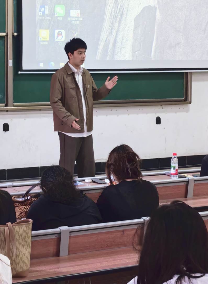 活动伊始,牟歆副院长致辞。他指出,本次活动作为学院本科生导师制的综合性育人活动,具有三点重要意义:首先,嘉宾们的分享内容涉及了考研深造、留学及直接就业等不同方向,既为同学们的未来规划提供了广阔视野,又是学院多元化人才培养成果的展现;其次,高年级同学的“现身说法”具有天然的亲近感与感染力,这种朋辈教育比单纯的师长说教更具有实效力,能激励低年级同学见贤思齐;最后,他高度肯定了本次活动是本科生导师制“落地落实”的生动体现,通过整合导师资源、朋辈力量与学生需求,构建起全方位的成长支持体系,并对组织老师的付出表示感谢。